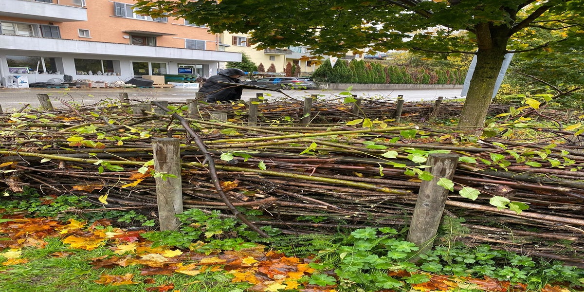 Einen wichtigen Beitrag leistete auch die 8. Klasse von Herrn Pfeffer. Die Schülerinnen und Schüler stockten im Zelgli die bestehende Benjes-Hecke wieder auf und entfernten invasive Brombeerarten – ein Einsatz, der Fachwissen und Durchhaltewillen erforderte.